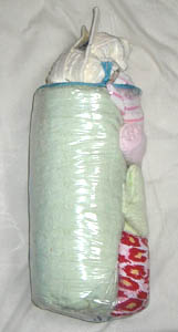 大きな手提げ袋、クローゼットに吊るすタイプの麻の整理ボックス、入浴剤3袋(つかわねー)、身体洗うタオル…だったかな