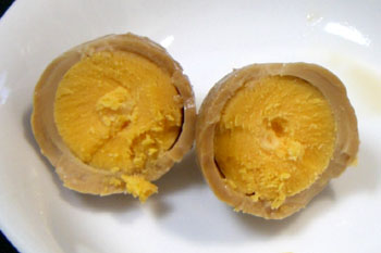 しかも、たまごは、周りの味噌に水分を吸い取られて一回り小さくなっている。