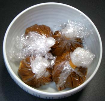 これで、ゆでたまご4個をこんな感じでラップに個包装してみました。